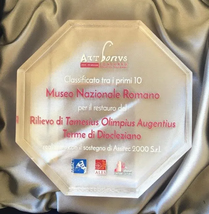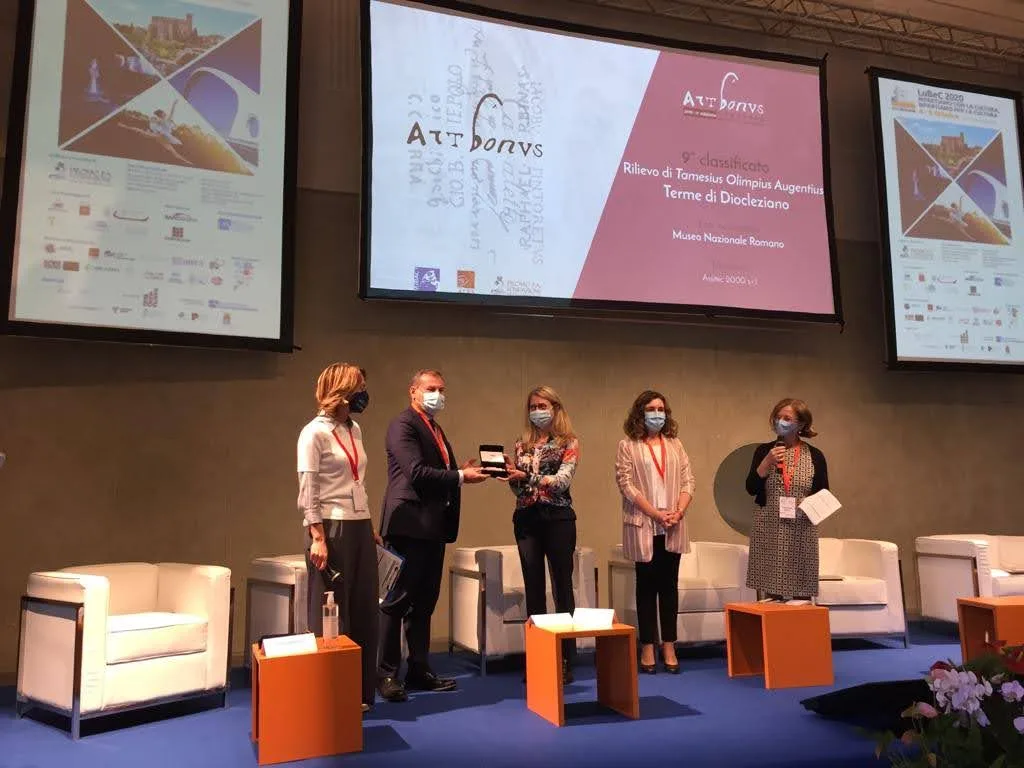 Chiara Giobbe, Responsabile dell’Ufficio Fundraising ha ritirato il il premio del Concorso “Progetto Art bonus dell’anno” 2019 assegnato ai primi dieci progetti più votati dal pubblico della rete. Il Museo Nazionale Romano ha partecipato con il restauro del rilievo di Tamesius Olimpius Augentius, realizzato grazie al contributo della società Assitec 2000, patrocinato dal Rotary Club Distretto 2080 ed eseguito da Imagoarte s.r.l di Alessandra Morelli. Il premio è stato consegnato dal Direttore Generale Musei, Massimo Osanna, alla presenza di Francesca Velani Direttore del LuBeC, di Anna Laura Orrico, Sottosegretario di Stato del MiC e di Carolina Botti, Direttore di Ales S.p.A. e referente Art Bonus per il MiC.