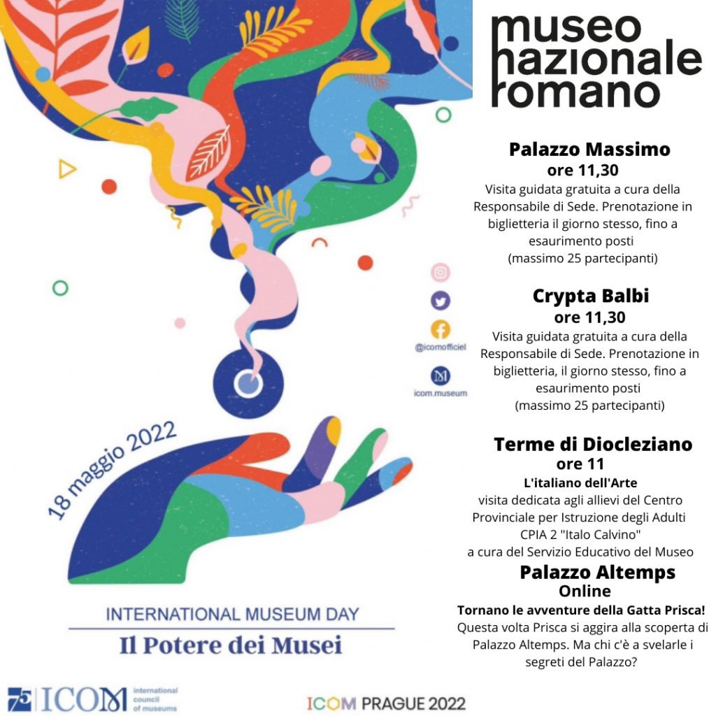 Mercoledì 18 maggio il Museo Nazionale Romano propone una serie di iniziative gratuite in occasione della Giornata Internazionale dei Musei, istituita da International Council of Museums – ICOM.