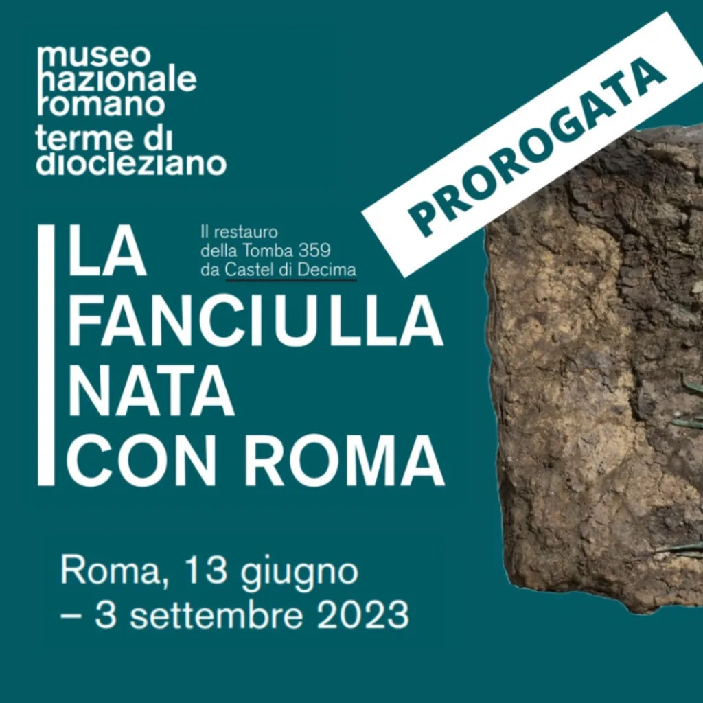 E’ stata prorogata all’8 ottobre la mostra dello spettacolare corredo della fanciulla di Castel di Decima, esposta nell’Aula XI bis delle Terme di Diocleziano. L’eccezionale contesto, che si colloca cronologicamente intorno al 730 a.C., è stato restaurato grazie ad un intervento della Fondazione Paola Droghetti che ha finanziato una borsa di studio per una giovane restauratrice formata presso l’Istituto Centrale per il Restauro, che ha effettuato lo scavo e il restauro della tomba, sotto la guida delle restauratrici e degli archeologi del Museo Nazionale Romano.