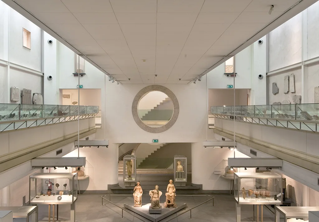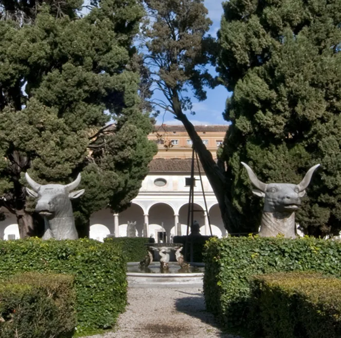 The Baths of Diocletian are a unique monumental complex because of their size and exceptional state of preservation. They were constructed in a period of only eight years, between 298 and 306 AD, and extend over an area of 13 hectares, in the area between the Viminal and Quirinal Hills. The complex was able to accommodate up to 3,000 people at one time and was constructed according to the usual model used for the great imperial baths, with the principal rooms of the bathing ritual distributed along a central axis. The caldarium, the hot chamber heated using a complex system of air ducts beneath the floors and around the walls, led to the tepidarium, a chamber with an intermediate temperature, and then to the frigidarium, the vast chamber for cold bathing, recognisable today in the Basilica of Santa Maria degli Angeli. There was also the natatio, a vast open-air swimming pool measuring 4,000 square metres and embellished with a majestic monumental façade, two enormous gymnasiums arranged symmetrically to the sides of the central building, and a series of large halls with various functions. The most famous of these is the Aula Ottagona (Octagonal Hall), also known as the Planetarium because of its use in the 20th century, when its majestic umbrella dome was employed as a background against which the celestial vault was reproduced. The construction of the Baths was commissioned by the emperor Maximian, who dedicated them to his co-emperor Diocletian. This was the last great act of imperial propaganda: as the inscription originally affixed to the entrance notes, the emperor created a work of such magnificence to give it to his people. The complex remained in operation until the mid-6th century, when the Gothic War between the Eastern Roman Empire during the reign of Emperor Justinian I and the Ostrogothic Kingdom of Italy caused major damage to the city and its aqueducts, disrupting the water supply. The Baths were abandoned for approximately 1,000 years until 1561, when Pope Pius IV ordered the construction of a church and a charterhouse on the site of the ancient baths, entrusting the project to Michelangelo. The church was dedicated to Our Lady of Angels and Christian Martyrs, in remembrance of the many Christians who were believed to have died in the construction of the Baths. Michelangelo designed the church by transforming the tepidarium, frigidarium and part of the natatio, while the rooms of the Charterhouse, and in particular the main cloister containing the rooms of the monks and the small cloister, occupy the northern section of the bath complex. From 1575, starting under Pope Gregory XIII, some of the remaining halls of the Baths were transformed into the grain stores of the Pontifical Food Administration and into oil stores.
