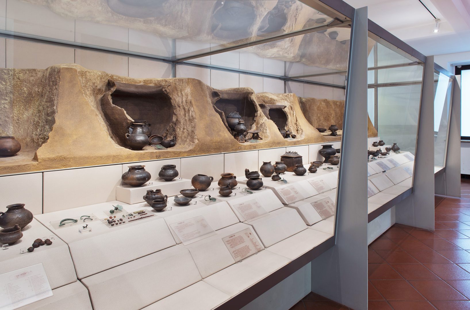 The Museum of the Protohistory of the Latin Peoples is located on the upper floor of the Michelangelo Cloister. It illustrates the development of the culture of Latium between the end of the Bronze Age (11th century BC) and the Iron Age up to the Orientalising Period (the 10th century BC to the beginning of 6th century BC), through the archaeological complexes explored and excavated in the territory surrounding Rome. Indeed, during this period, communities in Latium shifted from egalitarian, tribal structures organised as village communities to complex noble-customer socio-political entities, organised along proto-urban and then urban lines.
