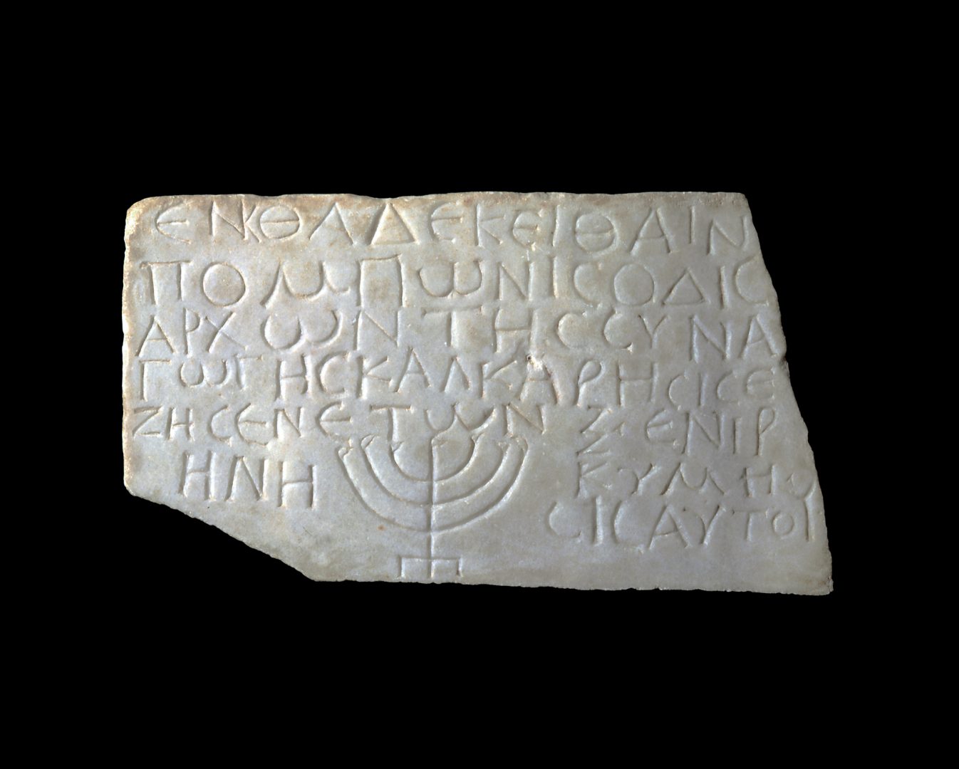 Tombstone inscription of Pomponius, twice archon of the Calcarenses synagogue, showing a menorah Baths of Diocletian