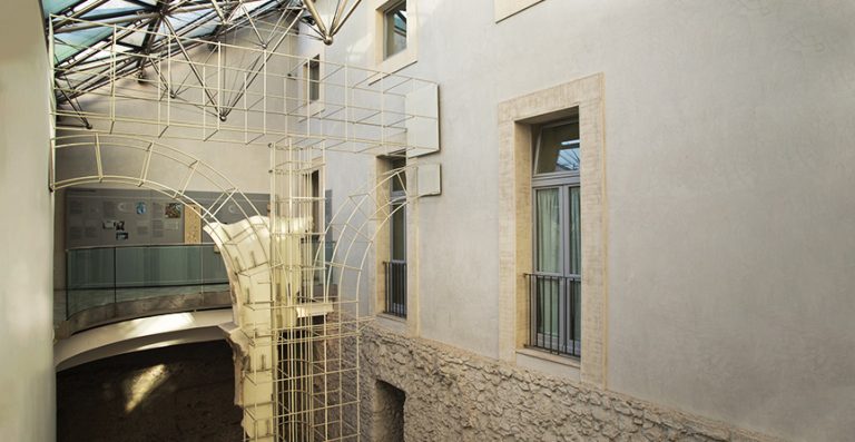 The Museum preserves and displays the traces of the structures, buildings and monuments that have existed in sequence in this area over the course of two thousand years. The city block in question, between Via delle Botteghe Oscure, Via Caetani, Via dei Delfini and Via dei Polacchi, tells a story that flows through the very building of the Museum, starting in the basements with the remains of the portico of the Teatro di Balbo and the vast public complex known as the Porticus Minucia Frumentaria, continuing along the various levels through the fortified complexes and Early Medieval and Medieval houses of merchants, until it reaches the modern era, with the 17th-century dormitory of the Convent of Santa Caterina where the various rooms of the Museum have been created.