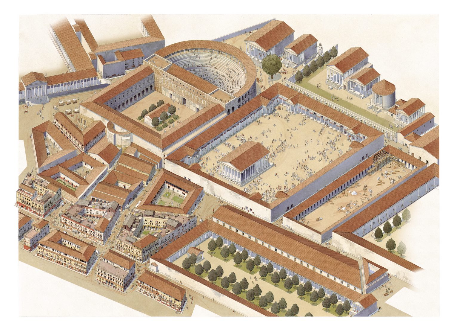 Reconstruction of the 5th-century view of the area around the Teatro di Balbo Crypta Balbi