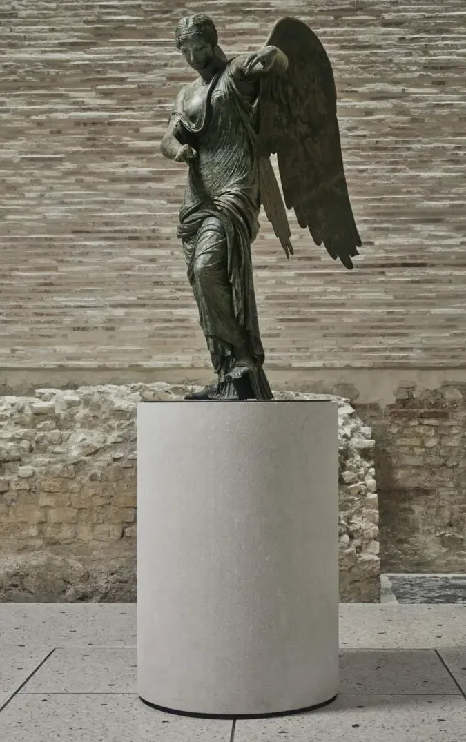 Il Museo Nazionale Romano è lieto di contribuire alle celebrazioni per l’anno di Brescia Capitale della Cultura con un’opera iconica proveniente dalle sue collezioni. La statua bronzea del Pugile in riposo, capolavoro di età ellenistica rivenuto alle pendici del Quirinale e esposto al Museo Nazionale Romano, grazie alla forza e alla potenza che esprime, colte in un momento di riposo e ripresa tra due combattimenti, è assurto a simbolo di resilienza e ripartenza particolarmente adatto al momento storico che stiamo vivendo: il dialogo di questa opera con la Vittoria Alata crea una sorta di gruppo scultoreo contemporaneo, un equilibrio tra forza e rinnovata pacificazione. Questa mostra permette anche al Museo Nazionale Romano di portare avanti importanti operazioni di rinnovamento degli allestimenti e di restauro dei suoi capolavori, come il Pugile e la statua bronzea di Valentiniano rivenuta sotto Ponte Sisto a Roma.