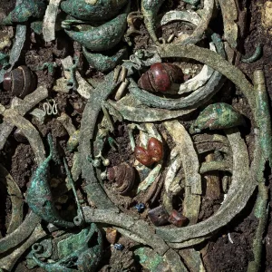 La donna è stata seppellita con un vestito coperto di gioielli : una collana di pendenti di bronzo a forma di animali e di figure umane, una serie di grandi anelli fissati al vestito con delle fibule di bronzo e d’ambra, degli ornamenti in argento per i capelli, ecc. Era accompagnata da un servizio da banchetto con coltelli per il sacrificio, spiedi per la cottura della carne, vasi di bronzo e di ceramica per il consumo del vino.