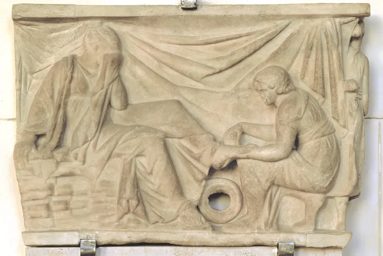 Relief from a sarcophagus depicting a wedding scene (washing of the feet) Palazzo Altemps
