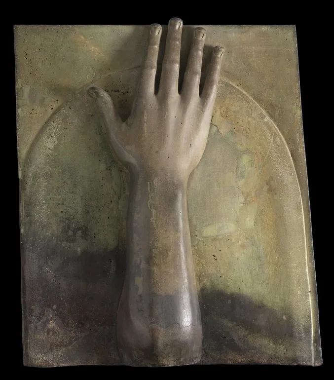 The sculpture uses crude realism to depict a boxer at rest at the end of a fight. Signs of injury on the body and face are rendered through colour using red copper to highlight the wounds from which small drops of blood fall onto the body.