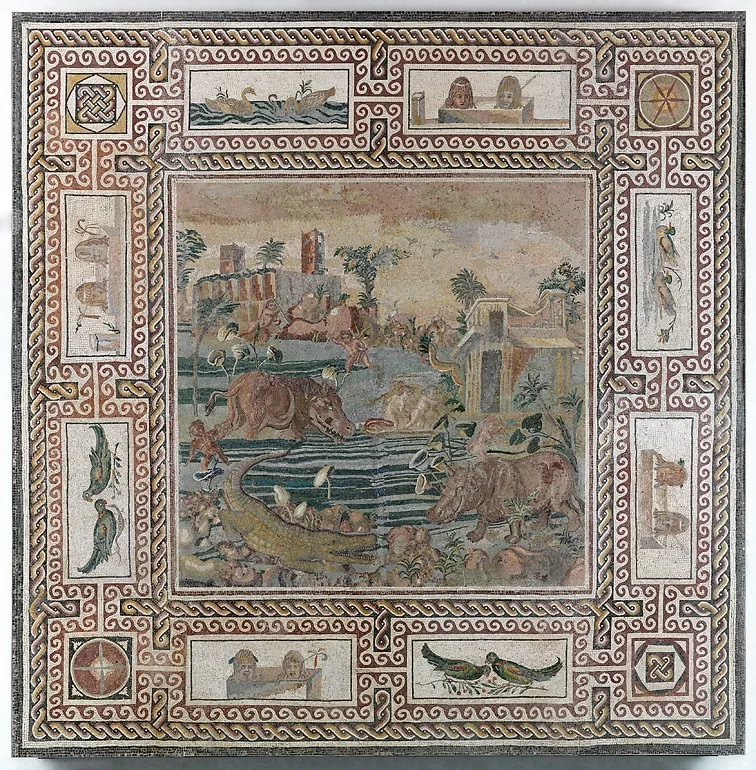 With its scenic location on the Tiber, this villa was decorated with fine frescos and elegant mosaics, testimony to the art of the early Imperial Age.