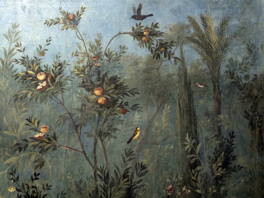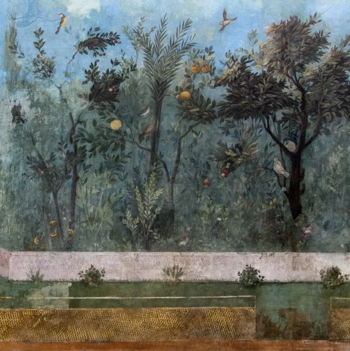 A lush painted garden decorated the triclinium (dining room) of Livia, the wife of the Emperor Augustus, in her villa along the Via Flaminia. Laurel from the grove at the villa was used to create the triumphal crowns of the Roman Emperors.