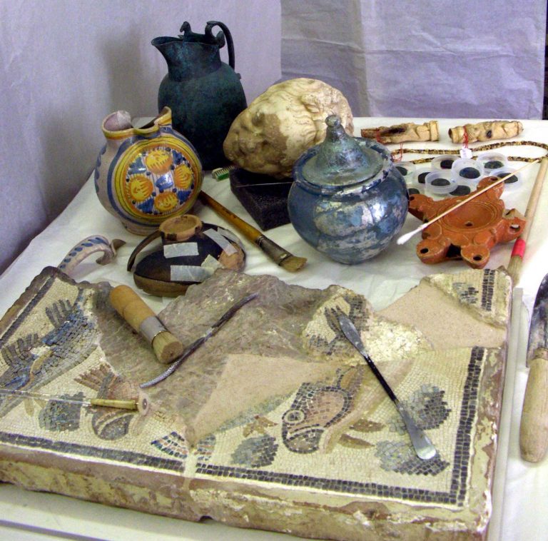 I. Artifacts of various materials being restored
