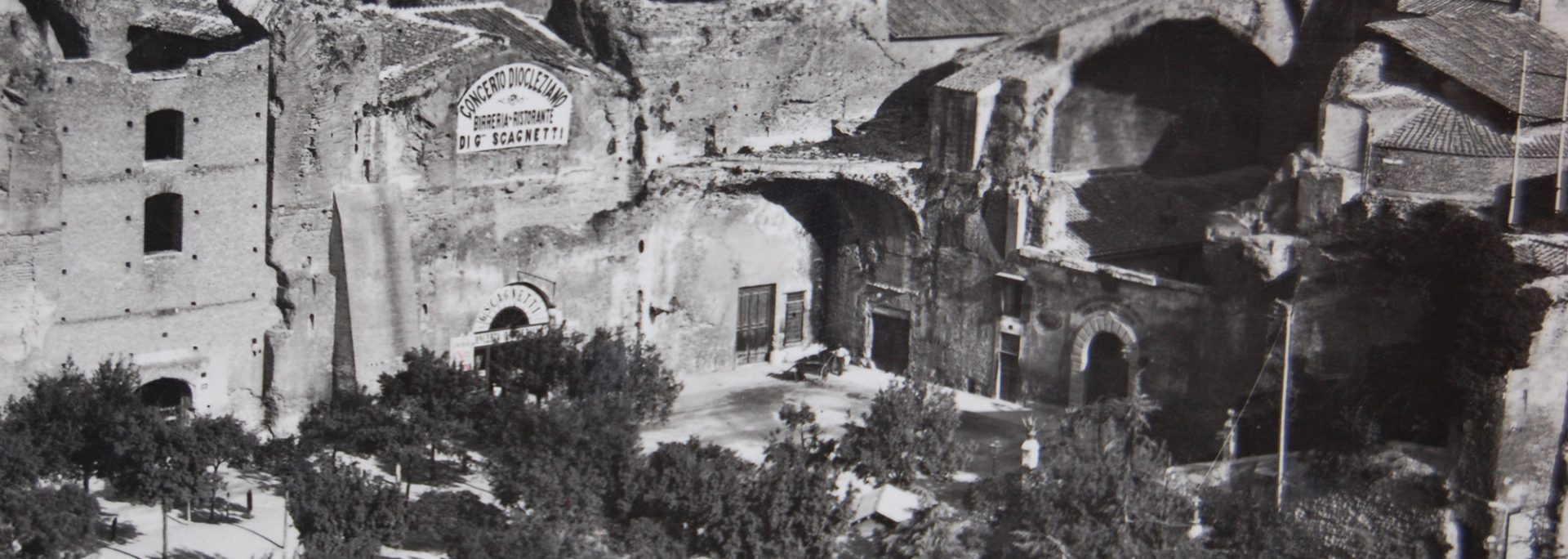 The decision was made to base this museum at the site of the Baths of Diocletian and in part of the Michelangelo Cloister, which was already being used as a depository for archaeological material unearthed during the construction of the nearby Ministry of Finance. The museum also received numerous other materials from pre-existing collections, such as the Kircherian Museum, and from acquisitions of sculptures and collections of reliefs belonging to noble Roman families, including the celebrated Ludovisi Collection. When it was established, the Museum had access to a very small section of the Baths complex, which was occupied by an enormous range of institutions and activities, from the Margherita of Savoy Hospice for the Blind in Poverty, which was housed in the spaces belonging to the Charterhouse, to the famous Caffè Concerto al Diocleziano in Hall V. The decision by the Executive Committee for the 1911 Commemorative Festivities in Rome to hold the Great Archaeological Exhibition to celebrate the fiftieth anniversary of the Unification of Italy in the Baths of Diocletian represented a major opportunity to free up the entire complex and bring it back to its original function as an archaeological monument.