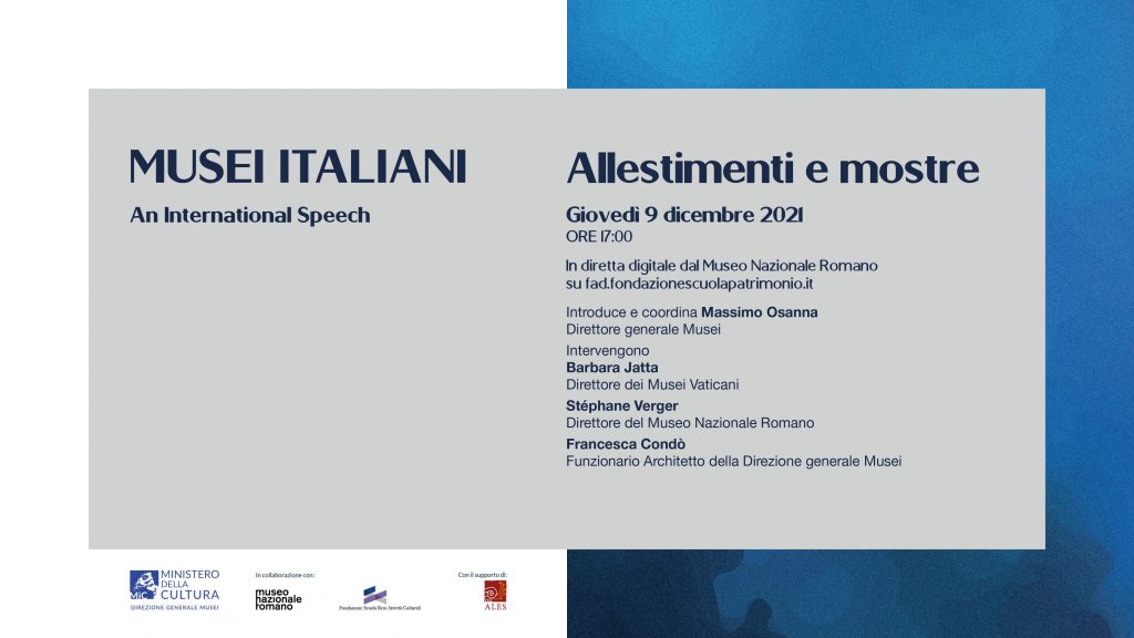 Un’occasione per presentare e condividere, a livello internazionale, esperienze su temi di attualità che riguardano la gestione, la conoscenza e la promozione degli istituti museali. In questo terzo appuntamento, tre direttori ed esperti di importanti istituti museali italiani e stranieri si incontreranno per raccontare, in diretta digitale, la loro esperienza su Allestimenti e mostre.