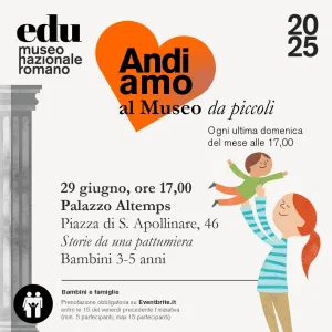 A partire da giugno 2025 il Museo Nazionale Romano, in collaborazione con Opera Laboratori, dedica l’ultima domenica del mese ai bambini e alle loro famiglie con laboratori didattici gratuiti per i possessori del biglietto che si svolgeranno, ogni volta, in una delle sue sedi.