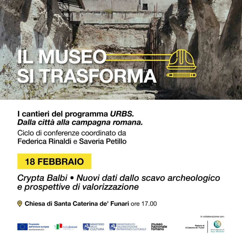 Prosegue, il 18 marzo, il ciclo di conferenze “Il Museo si trasforma“, curato da Federica Rinaldi e Saveria Petillo e dedicato alla presentazione dei cantieri del grande progetto URBS, dalla città alla campagna romana. L’evento sarà ospitato nella chiesa di Santa Caterina de’ Funari, in collaborazione con la Rettoria di S. Caterina de’ Funari e l’Istituto Romano di S. Michele.