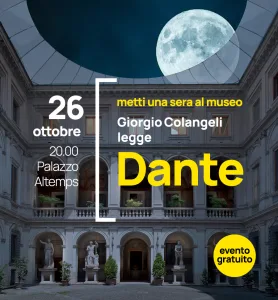 L’Attore Giorgio Colangeli recita alcuni brani scelti, tratti dalle tre cantiche della Divina Commedia, che propongono immagini, personaggi, legate al mondo greco-romano: ad un tempo, omaggio al sommo poeta e suggestiva contiguità con le prestigiose memorie del Museo Nazionale Romano.