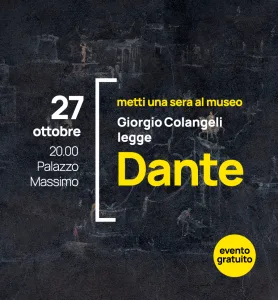 L’Attore Giorgio Colangeli recita alcuni brani scelti, tratti dalle tre cantiche della Divina Commedia, che propongono immagini, personaggi, legate al mondo greco-romano: ad un tempo, omaggio al sommo poeta e suggestiva contiguità con le prestigiose memorie del Museo Nazionale Romano.