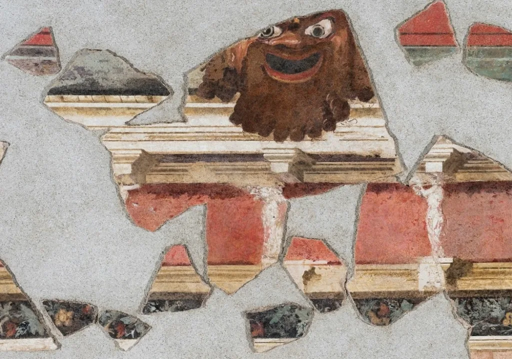I frammenti di affresco, restaurati attraverso diverse operazioni tecniche volte a conservare la materia, eliminare gli effetti del degrado e restituire la giusta lettura del brano pittorico, facevano parte di un complesso di oltre 70 cassette e sono stati rinvenuti nel 2013 nel contesto di una campagna di scavo condotta dalla Soprintendenza Speciale per i Beni Archeologici di Roma nell’area del “Cavalcavia di Salone” presso l’uscita della A24 di via Palmiro Togliatti. Le operazioni di scavo hanno messo in luce la cosiddetta “Villa del Giurista”, attribuita a Quinto Mucio Scevola, giurista di età tardo repubblicana morto nell’82 a.C.;