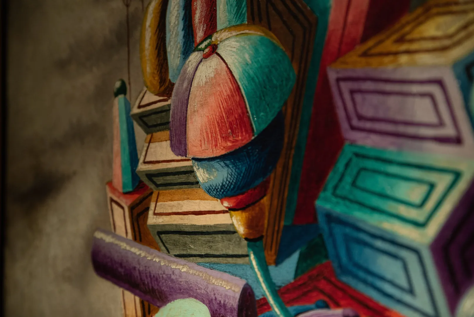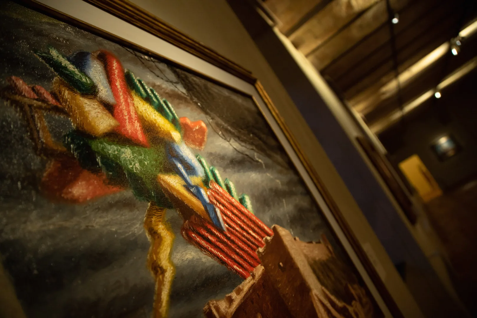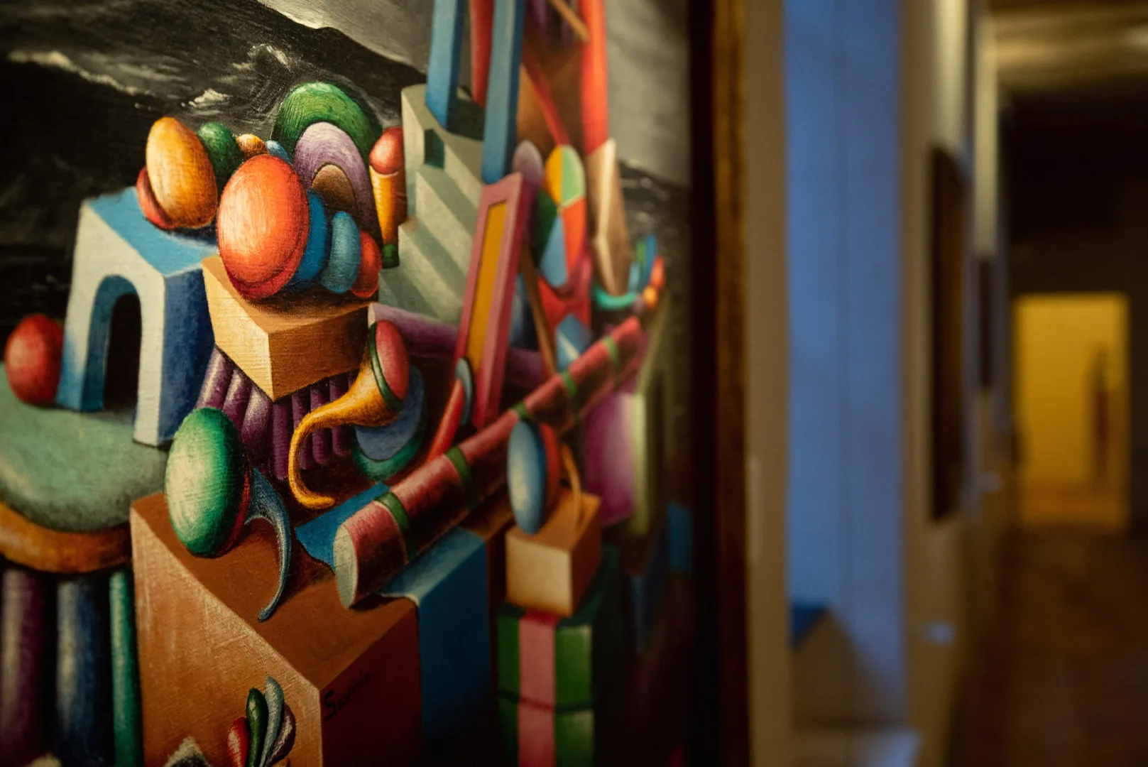 Le opere esposte mettono in risalto, attraverso temi e momenti fondamentali, la particolarità di una poetica che associa e coniuga antico e moderno, estetica e ironia, memoria e fantasia in un’ottica globale oggi di grande attualità. Il gioco, le strutture e trame illusorie e chimeriche, le civiltà passate e le epoche aurorali, la decostruzione dei racconti leggendari e mitici, le caleidoscopiche immagini che spezzano l’equilibrio visivo in composizioni inattese e folgoranti, diventano gli indizi da inseguire negli spazi del piano nobile del Museo.
