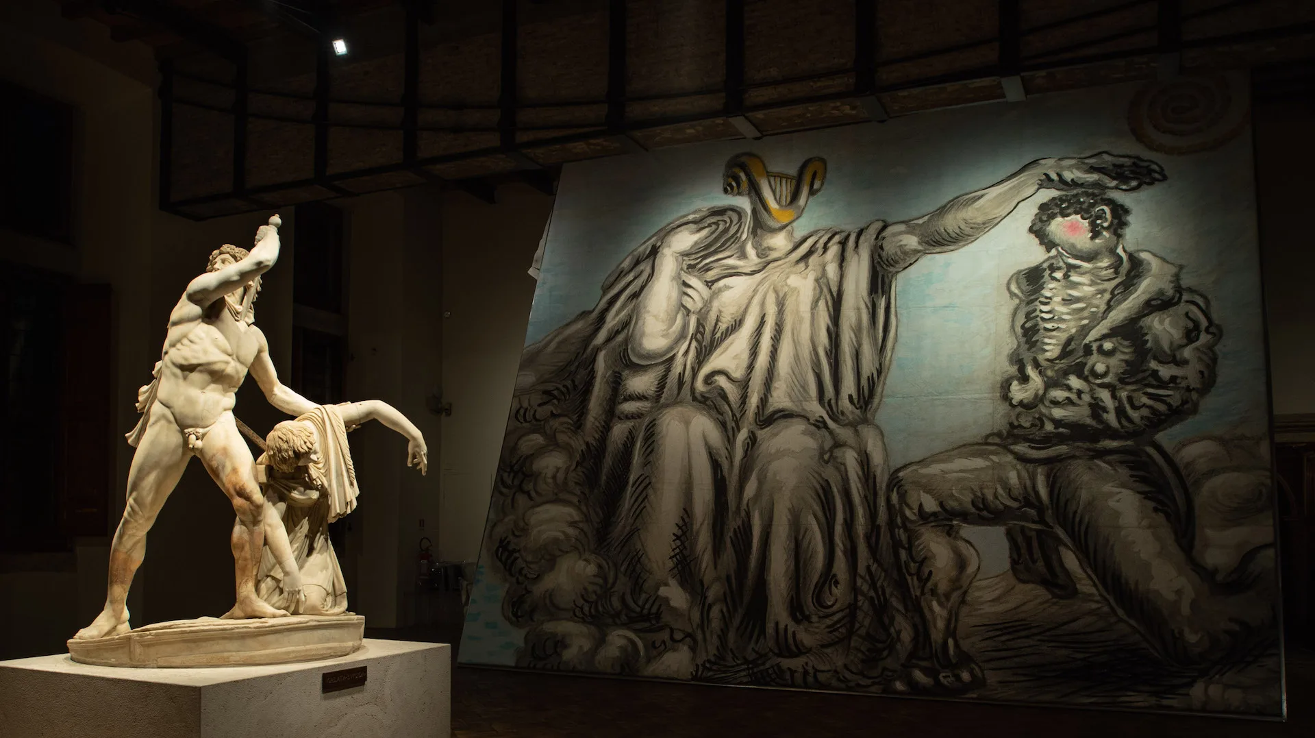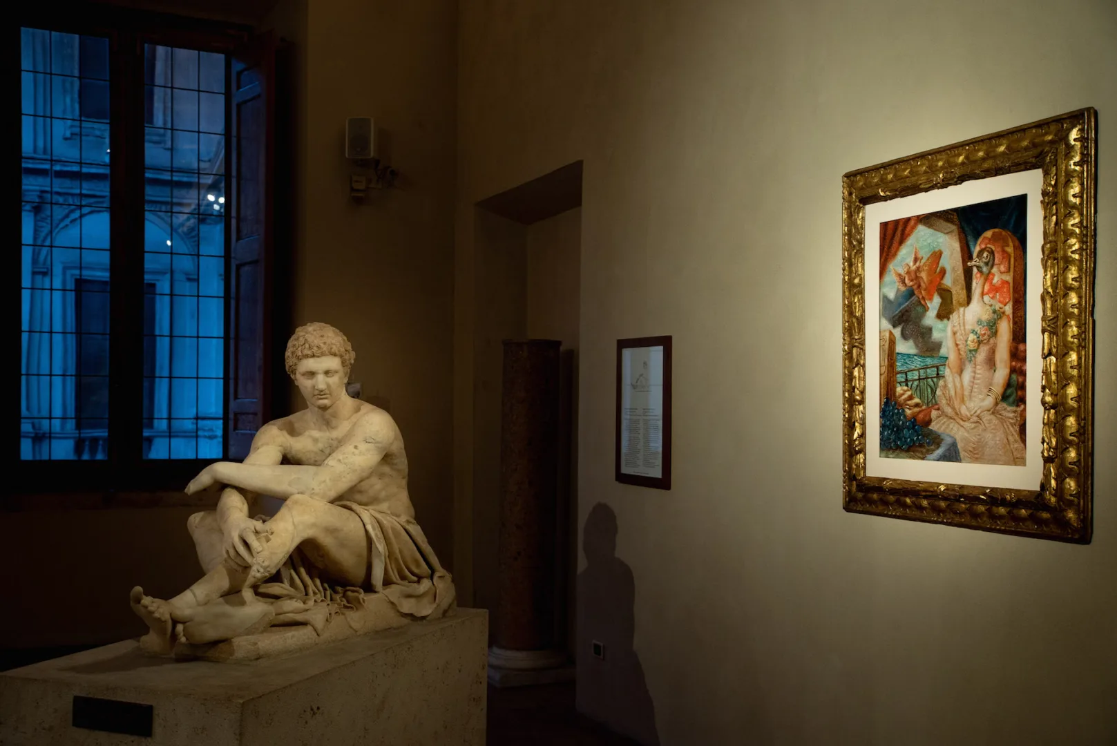 La mostra “Savinio. Incanto e mito” al Museo Nazionale Romano di Palazzo Altemps dall’8 febbraio al 13 giugno 2021 mette in luce, attraverso circa 90 lavori selezionati tra dipinti e opere grafiche provenienti da istituzioni pubbliche e collezioni private, i molteplici interessi dell’artista che spaziano dalla musica alla letteratura, dalla pittura al teatro. I dipinti sulle pareti creano cortocircuiti sorprendenti, suggerendo nuove affinità in un gioco di corrispondenze e accordi liberi e originali, non solo con la statuaria classica ma anche con la decorazione a fresco degli spazi di Palazzo Altemps.