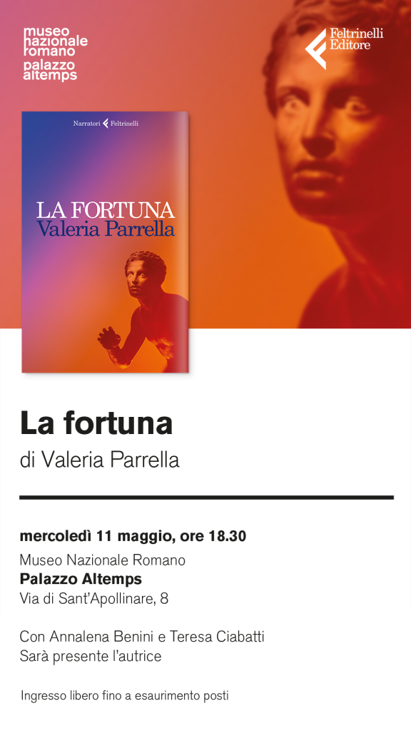Mercoledì 11 maggio la scrittrice Valeria Parrella, con Annalena Benini e Teresa Ciabatti, presenterà il suo ultimo romanzo “Fortuna” (Feltrinelli, 2022).