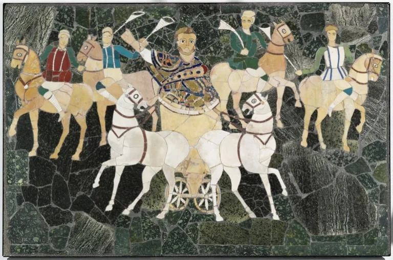 Nell’antica Grecia l’agone era una competizione tra più sfidanti che si cimentavano in particolari prove di logica, intelletto, politica, attività fisica, musica. In particolare gli agoni ginnici consistevano in pubbliche manifestazioni sportive dove gli atleti si sfidavano in giochi e gare che consentivano di mettere in risalto le proprie qualità fisiche. Recepita anche a Roma, in età imperiale la pratica agonistica era declinata anche nelle sfide che prendevano posto nel circo con le corse dei carri condotti dagli aurighi. Nelle sale di Palazzo Massimo è possibile ammirare numerose opere ispirate a questo tipo di competizione, particolarmente apprezzata nell’Urbe e che ebbe una forte eco anche nell’espressione artistica dell’epoca. Gli aurighi romani gareggiavano per quattro diverse fazioni, identificate dai colori rosso, verde, blu e bianco delle loro casacche, come mostrano quattro emblemata in mosaico provenienti dalla villa di Baccano sulla via Cassia e il pannello in opus sectile parietale che si conservava nella grande aula della residenza privata del console Giunio Basso sull’Esquilino. Alcuni di loro, particolarmente abili e vincitori di numerose gare, dedicarono il proprio ritratto ad Ercole – eroe al quale l’atleta assimilava se stesso e le proprie imprese – in un sacello posto negli Horti Caesaris lungo la via Portuense. Ma non era solo l’ambito cultuale ad accogliere ritratti di aurighi: questi dovevano essere esposti anche in luoghi pubblici, a commemorazione di gare e vittorie e, verosimilmente, anche sui monumenti funerari di coloro che in vita avevano ottenuto onori e fama, come nel caso del Frammento di rilievo con auriga vincitore.