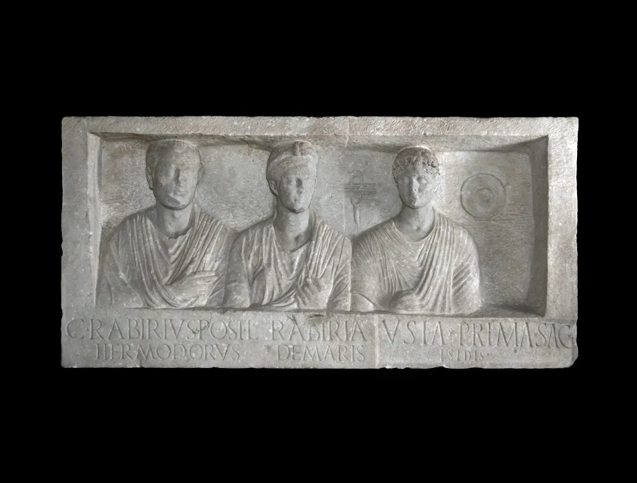 Travertino e marmo sono i materiali cui era affidata la memoria di uomini e donne che componevano la società romana.