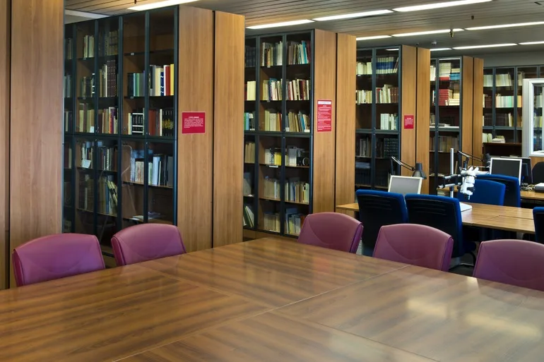 Moltissime attività che si svolgono presso il Medagliere del Museo Nazionale Romano non possono prescindere dallo strumento bibliografico, indispensabile per l’identificazione, la selezione e la catalogazione della straordinaria moltitudine di reperti in esso conservati (oltre 500.000). Il piccolo fondo bibliografico di argomento numismatico costituito agli inizi del Novecento per soddisfare le esigenze dell’appena sorto Medagliere, andò via via incrementandosi grazie ad acquisti, donazioni e scambi finché, sul finire del secolo, due grosse acquisizioni ne hanno modificato radicalmente la fisionomia, accrescendone il prestigio e la funzionalità. Nel 1996 venne acquistata una grossa parte della storica biblioteca numismatica dei fratelli Santamaria, studiosi e commercianti di monete in Roma, che vanta numerosi di periodici, monografie, repertori e cataloghi d’asta. Nel 1999 venne acquisita, per generosa donazione degli eredi, la straordinaria biblioteca privata del prof. Francesco Panvini Rosati, già Direttore del Medagliere del Museo Nazionale Romano e poi Ordinario di Numismatica all’Università degli Studi di Roma “La Sapienza”, ricchissima di pubblicazioni di argomento prevalentemente numismatico ed economico, oltre che di volumi di storia, letteratura, storia dell’arte, medaglistica e sfragistica.