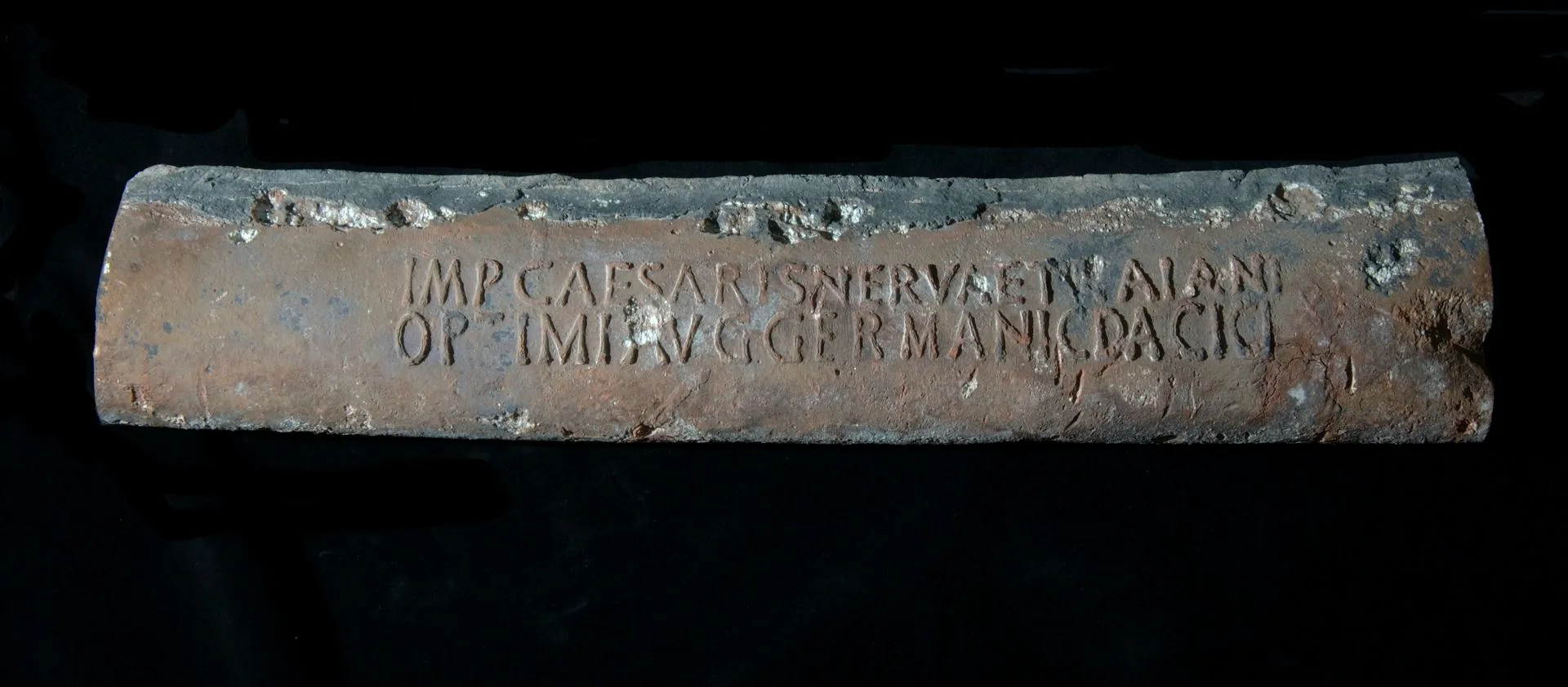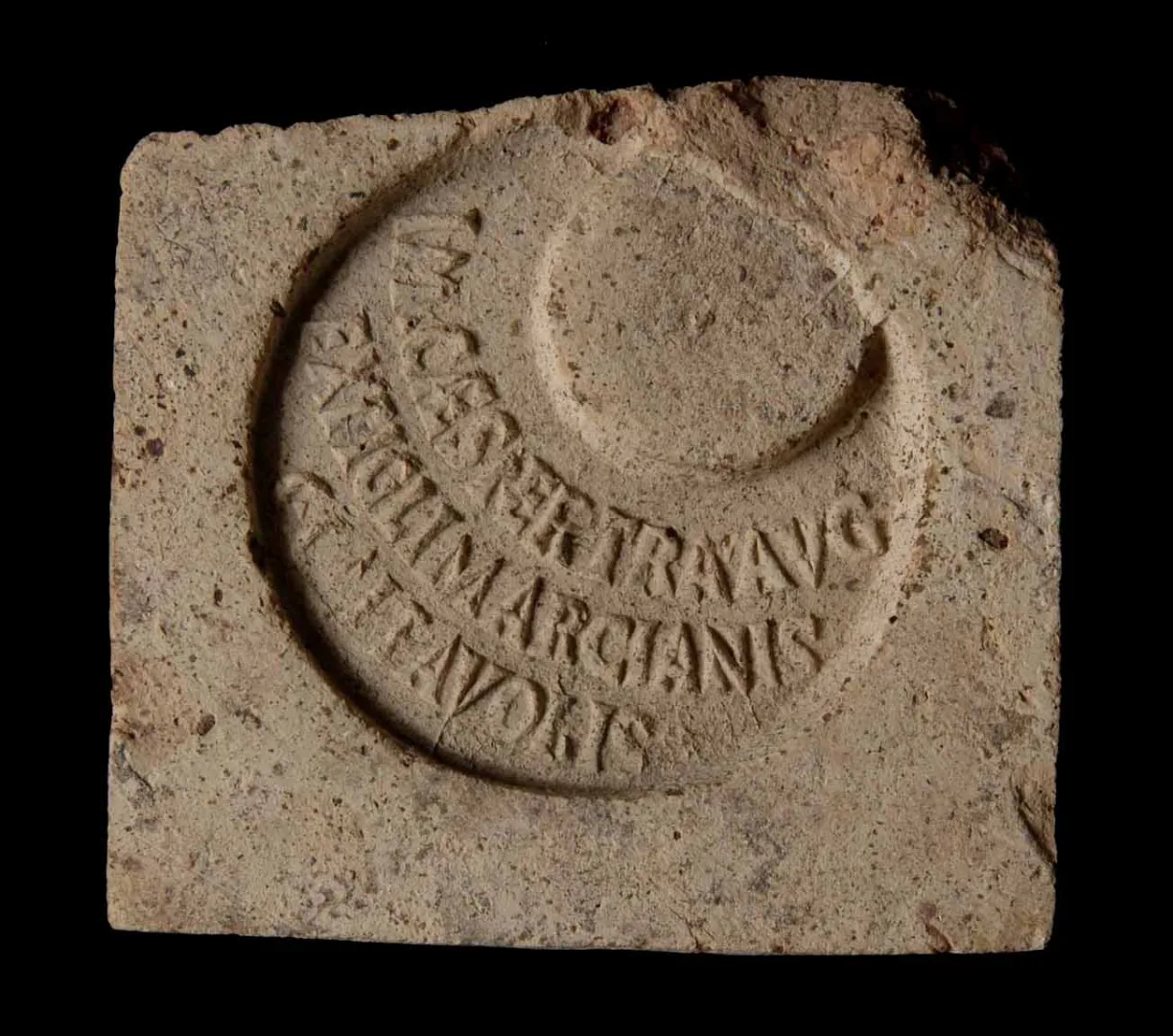 Mattone con marchio da una fabbrica di Traiano Terme di Diocleziano