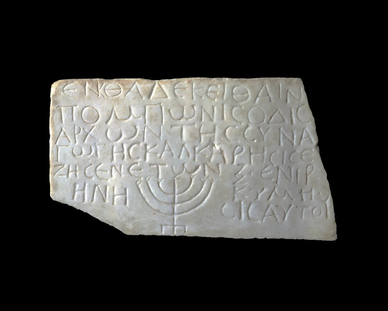 Iscrizione sepolcrale di Pomponius, arconte della sinagoga dei Calcarensi con raffigurazione di menorah Terme di Diocleziano
